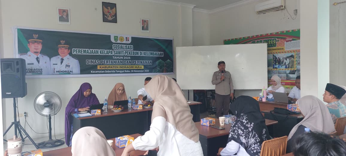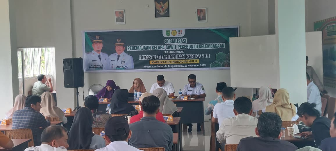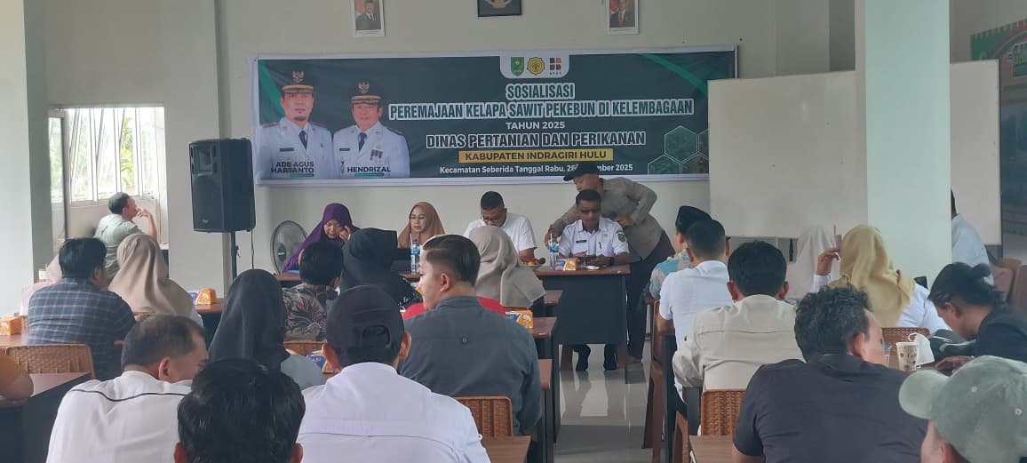 Pemerintah melalui Badan Pengelola Dana Perkebunan (BPDP) melaksanakan sosialisasi Program Peremajaan Kelapa Sawit Pekebun di KUD Usaha Manunggal Desa Seresam, Kec. Seerida Kab Indrahiri Hulu. Kegiatan ini diselenggarakan sebagai tindak lanjut dari pelaksanaan program pendanaan sesuai Peraturan Menteri Pertanian Nomor 05 Tahun 2025.